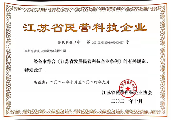 省級民營企業科技證書