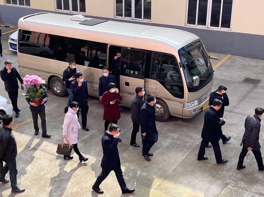 2022年2月10日上午11時許,泰州市海陵區區委書記孫群書記等領導一行來到我司進行走訪調研,針對我司年度發展規劃提出指導性意見,我司董事長丁克芳先生及董事會成員陪同視察!