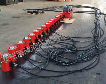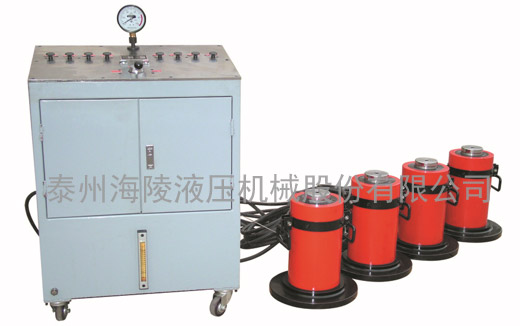 我公司設(shè)計(jì)制造的(PLC)同步千斤頂廣泛適用于大型建筑工程設(shè)備,構(gòu)件的同步起頂、調(diào)整及鐵路、公路、橋梁工程的架設(shè)。它可根據(jù)現(xiàn)場的實(shí)際情況選配不同規(guī)格、型號、數(shù)量的超薄型JRSM系列、薄型JRCS系列、大噸位DYG系列10T、20T、30T、50T、100T、150T、200T、320T、500T千斤頂。以及配備1.1KW、2.2KW、3KW、4KW、5.5KW、7.5KW、13KW等不同規(guī)格的泵站,同時配備不同長度的高壓油管和合適的分配閥,采用一泵拖多頂?shù)姆椒ㄒ詽M足適應(yīng)施工現(xiàn)場的作業(yè)要求。