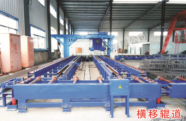 我公司生產的橫移輥道是一種物流輸送設備,它包括一個框架,框架的安裝板上安裝有橫移電機,框架的上端可移動配合設置輥道機主體,輥道機主體的兩端豎直向下延伸部與傳動鏈條兩端相連接,所述傳動鏈條經由橫移電機兩側的傳動鏈輪導向后與橫移電機輸出軸上固定的主動鏈輪相嚙合。